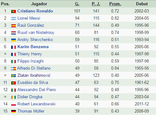 Si observamos en la tabla de goleadores que vimos un poco más arriba, de los quince máximos anotadores en la historia de la competición, Ibrahimovic es el jugador con menos promedio goleador de todos ellos. Y sí, lo sé perfectamente que para considerar si un delantero es decisivo o no, hay que valorar otras cosas más allá de los goles, pero al final éstos son los que marcan la diferencia.