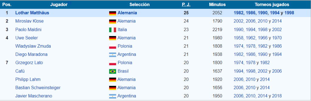 Jugadores con más partidos disputados